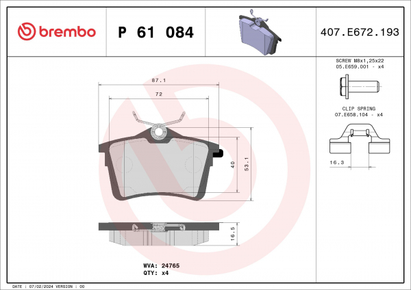 BREMBOP 61 084Piduriklotsi komplekt,ketaspidur