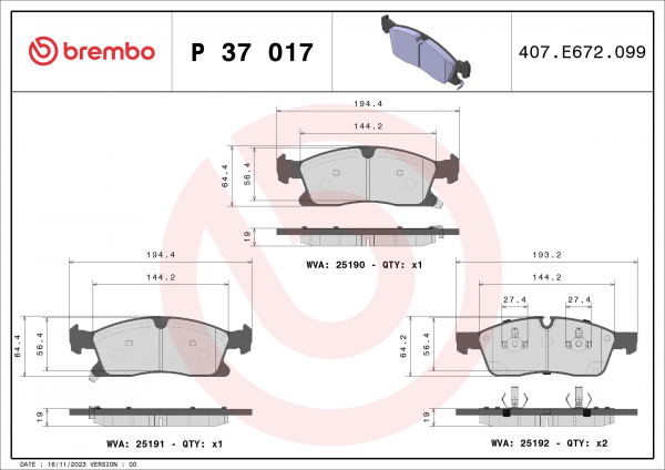 BREMBOP 37 017Piduriklotsi komplekt,ketaspidur